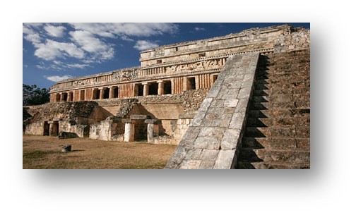 Ubicada a 80 km de Mérida demuestra lo que el arte puuc, construyo en las formas de sus edificios, con muros lisos y frisos ornamentados, la mayor parte de los edificios de Uxmal, pertenecen al periodo maya clásico y algunos a la fase media tardía, Chaac es representado en múltiples edificios, en el palacio del gobernador, cuadrángulo de las monjas, el templo del adivino, entre otros. Kabah, donde encontramos un cuadrángulo llamado Codz-pop que significa petate enrollado, el arco, los mascarones de Chaac, el templo de las columnas y la casa de la bruja.Kabah, donde encontramos un cuadrángulo llamado Codz-pop que significa petate enrollado, el arco, los mascarones de Chaac, el templo de las columnas y la casa de la bruja.